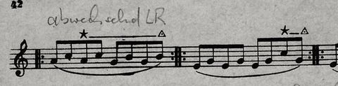 * ------- * der während dieser Phrase nach unten gedrückt bleibt und so als Stütze dient. Gleichzeitig bleiben alle Finger immer in der Nähe der Klappen.